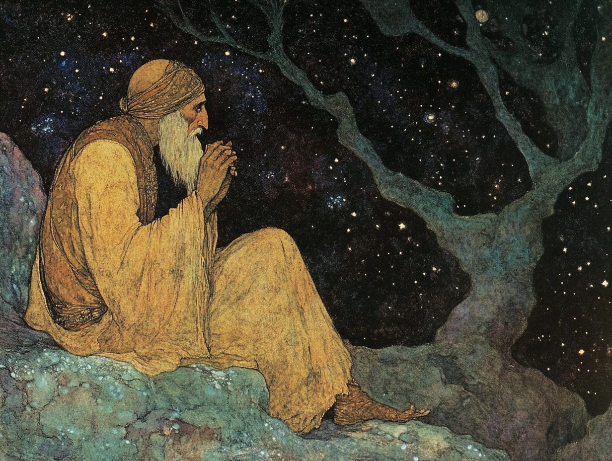 The boy approached the Shaykh, kissed his hand, and gestured towards a spot beneath a large fruit tree. Without a word, he gathered some of its finest fruits and presented them to his guest. The Shaykh accepted the offering with a gentle smile that seemed to light up his ancient face. He looked deeply into the boy’s eyes, discerning in him a soul polished by patient sorrow and ripe for Divine grace.